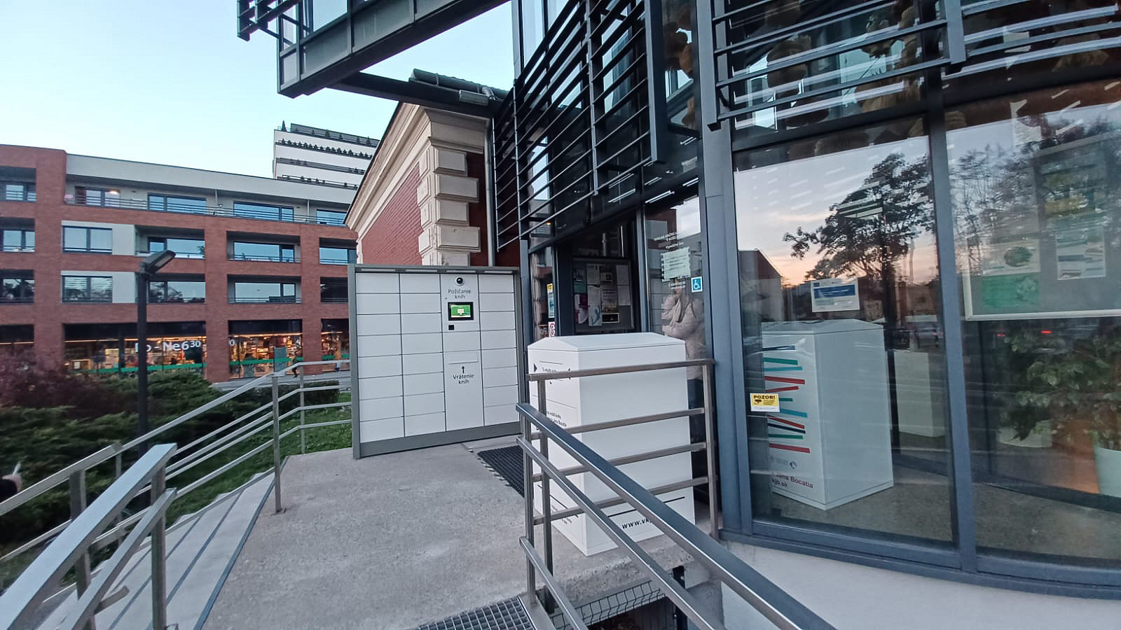Součástí realizace byl výdejní box s návratovým modulem a také samostatně stojící návratový box, který rozšiřuje možnosti vracení knih mimo provozní dobu knihovny.